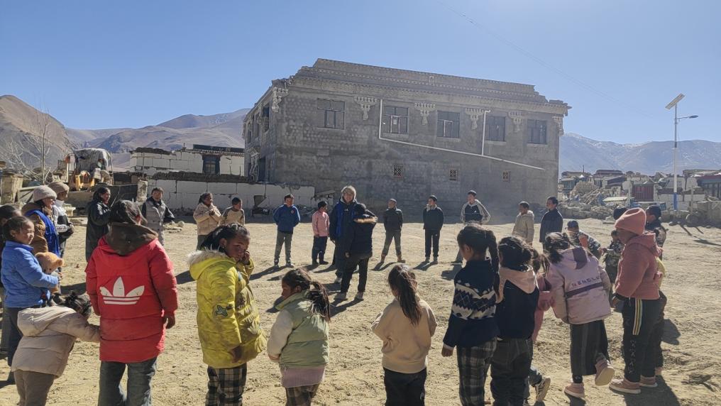 “扎西!”“德勒!”11日,在西藏日喀则市定日县措果乡塘仁村安置点,孩子们接力的呼声此起彼伏,“扎西德勒”是藏语里的吉祥话。阳光洒在帐篷间的空地上,也照进了正在与西藏星光社会工作服务中心社工次旦拉姆互动的孩子们心里。
