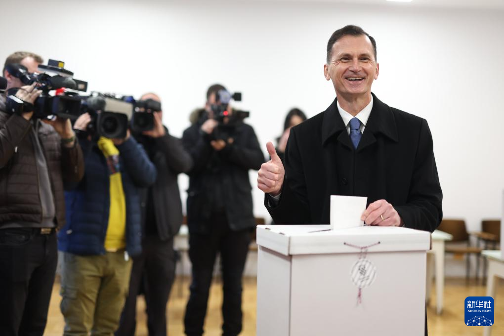 1月12日,克罗地亚民主共同体支持的候选人普里莫拉茨在首都萨格勒布的一处投票站参加总统选举第二轮投票。新华社发(Pixsell图片社/斯拉夫科·米卓尔摄)