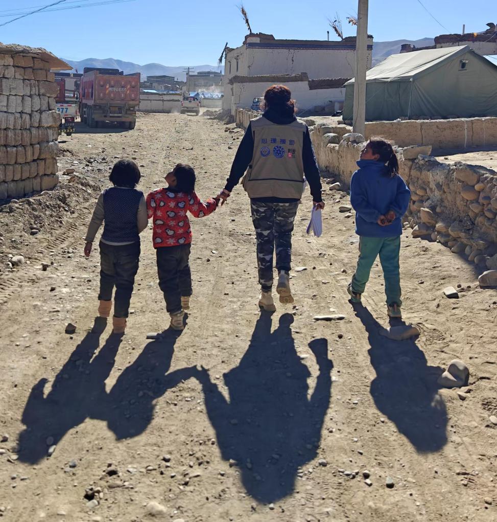 1月9日深夜,谭惜仁等4名队员赶到了定日县。10日她来到西藏森林消防总队特勤大队负责的措昂村安置点,原计划为森林消防队员提供心理服务,没想到战士们说:“老百姓和孩子们更需要!”