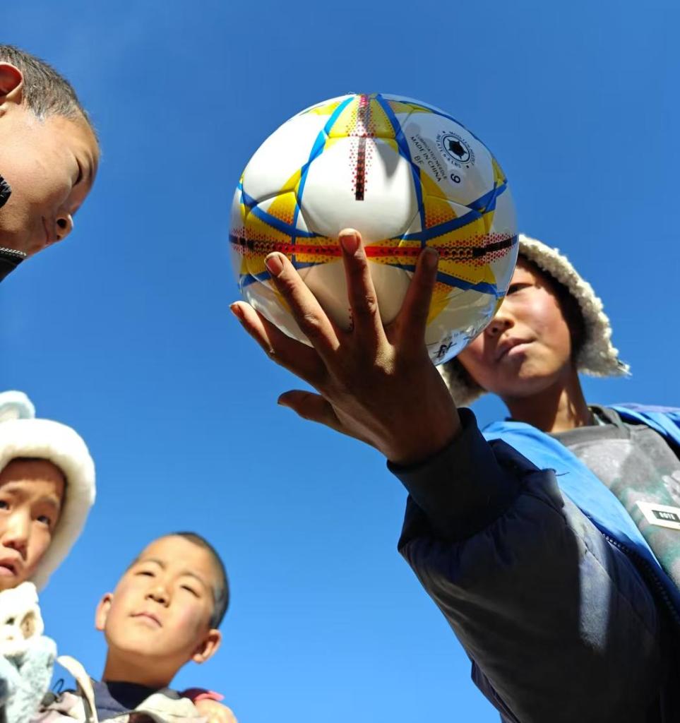 男孩子们喜欢踢球,谭惜仁给他们找来足球,两个土块一摆就是球门,开踢。他们给自己起了个响亮的名字——“牦牛队”!