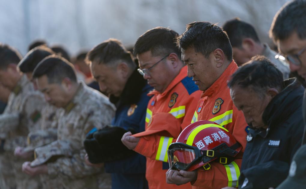 1月13日上午9时30分,西藏定日6.8级地震遇难同胞悼念仪式在受灾最严重的长所乡举行。新华社记者 丁增尼达 摄