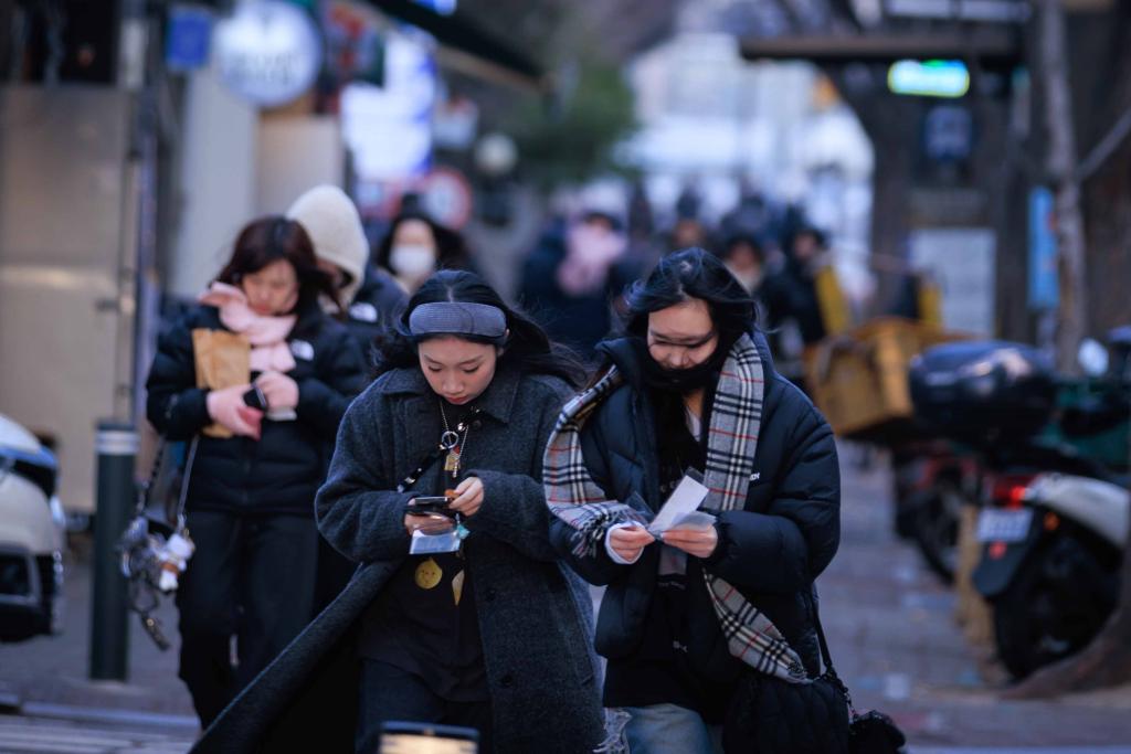 2025年1月9日,在韩国首都首尔,人们在低温中出行。新华社发(朴晋泽摄)