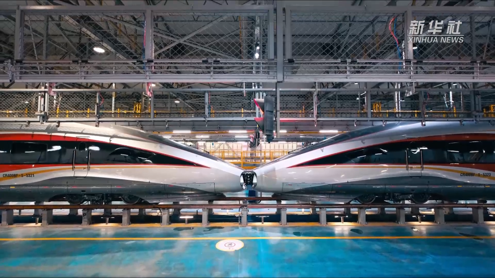 2025年春运将于1月14日拉开序幕,中国铁路广州局集团有限公司广州动车段动车组集结,“钢铁巨龙”整装待发,迎接春运。