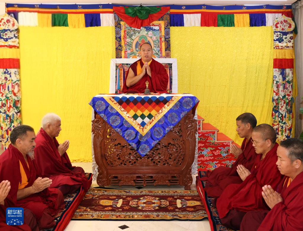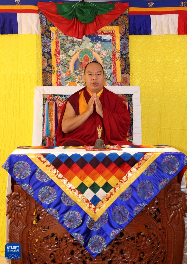 班禅额尔德尼·确吉杰布为定日地震灾区诵经祈福。新华社发