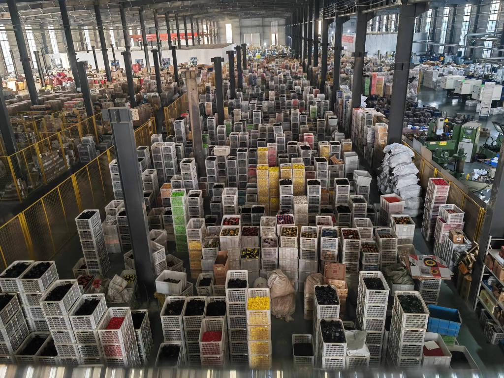 图为稍岗镇的一家工量具厂生产的钢卷尺壳。新华社记者 杨静 摄