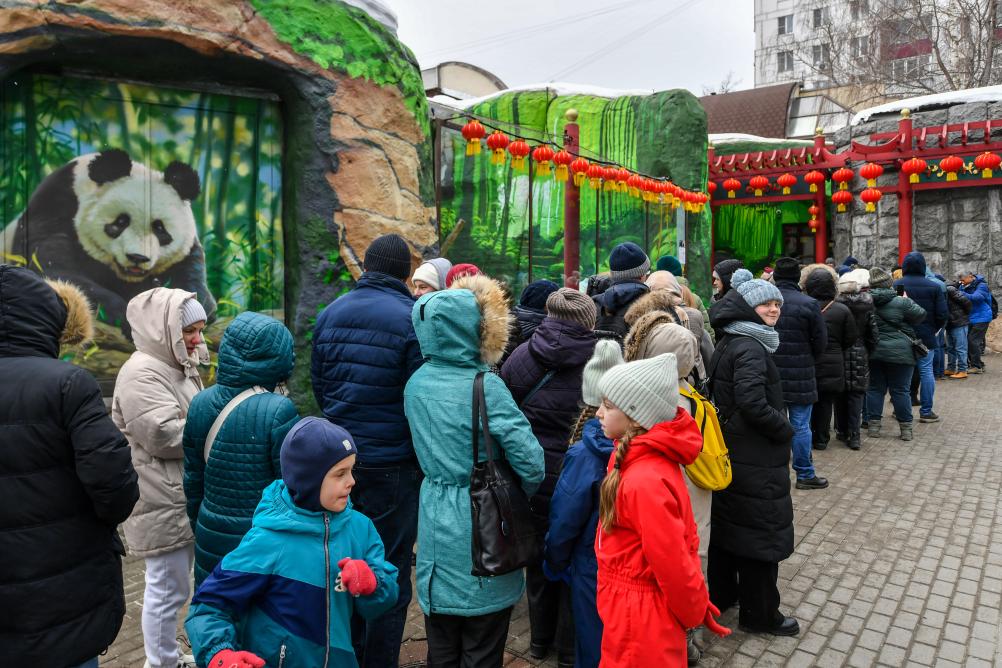 2024年3月8日,从出生就集万千宠爱于一身的大熊猫“喀秋莎”正式与游客见面,熊猫馆前的队伍一眼望不到头,俄罗斯民众不惜在寒风中等待数小时只为一睹其风采。