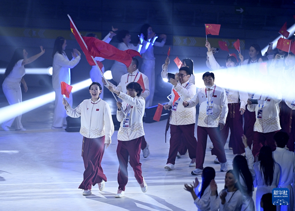 1月13日,中国大学生体育代表团在开幕式上入场。新华社记者 贺灿铃 摄