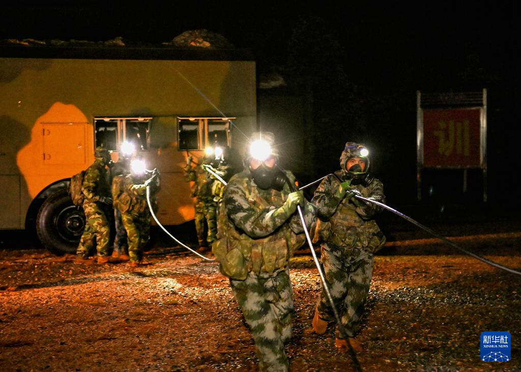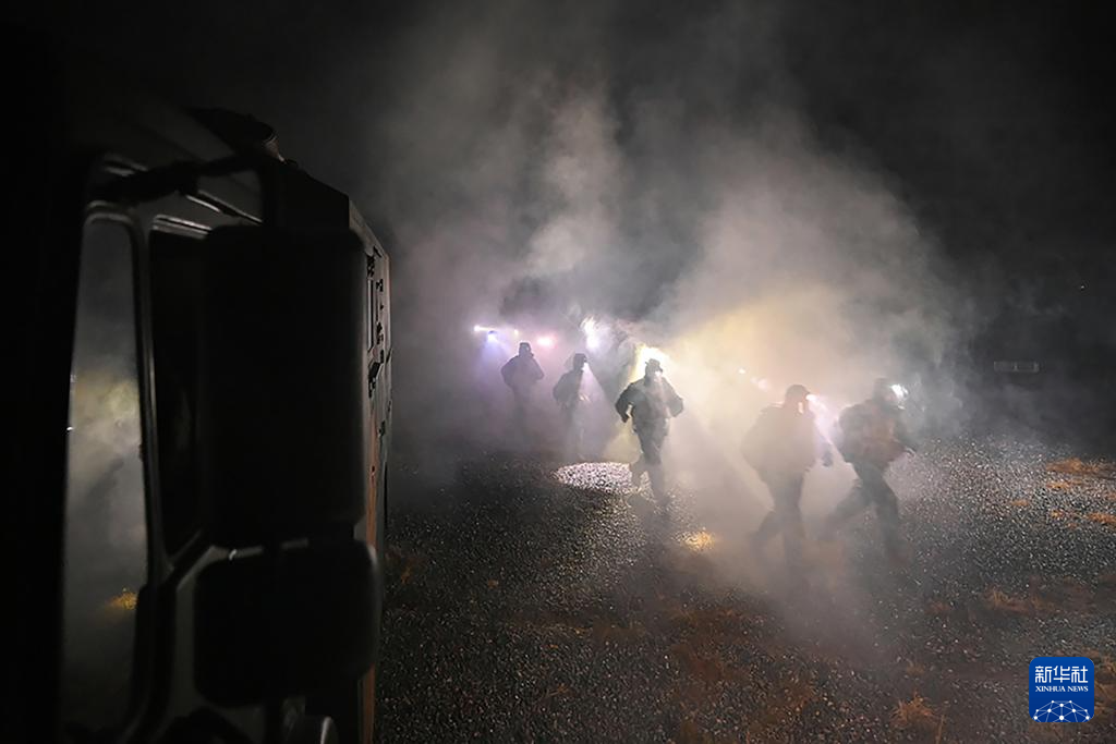 火箭军某旅高级军士群体带领号手快速出动,展开暗夜条件下战斗发射训练(2024年11月21日摄)。新华社发(刘明松摄)