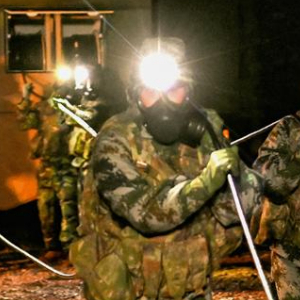 火箭军某旅高级军士群体带领号手展开全防护状态下训练(2024年11月21日摄)。新华社发(刘明松摄)