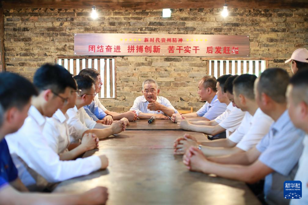 黄大发为前来参加党建活动的人们讲述修渠故事(2021年6月16日摄)。新华社记者 刘续 摄