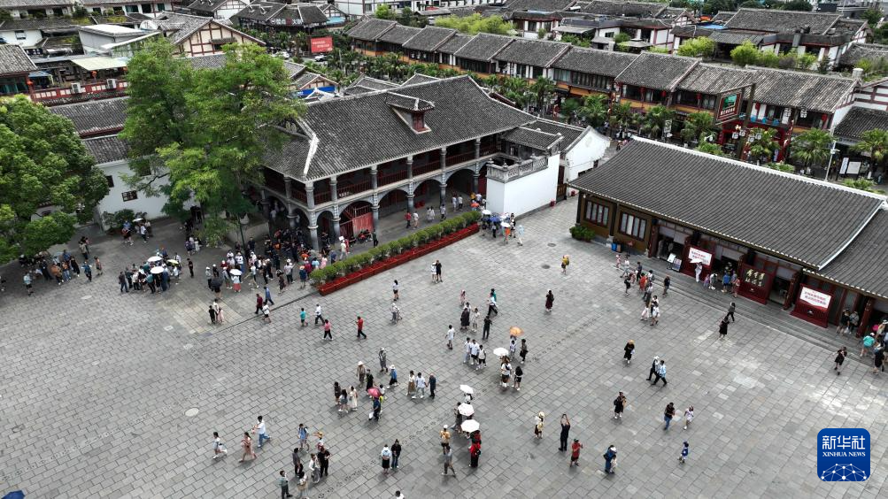 游客在遵义会议会址参观游览(2023年8月13日摄,无人机照片)。新华社记者 杨楹 摄