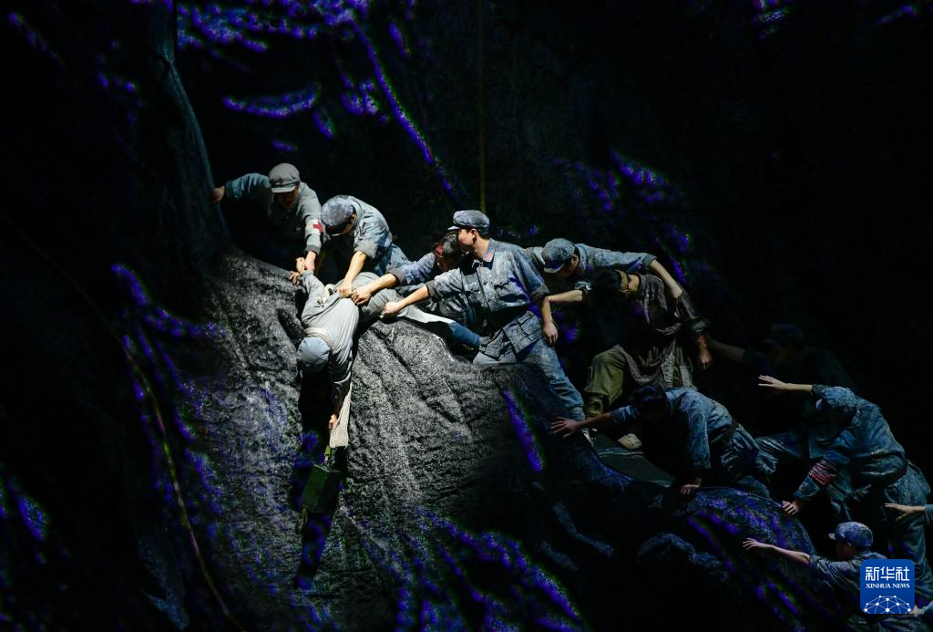 伴随嘹亮军号声,红军战士们跨险滩、搏激流……在遵义上演的沉浸式演艺剧目《伟大转折》,让观众“亲历”90年前的惊心动魄,感受一段红色历史迸发出的精神伟力。