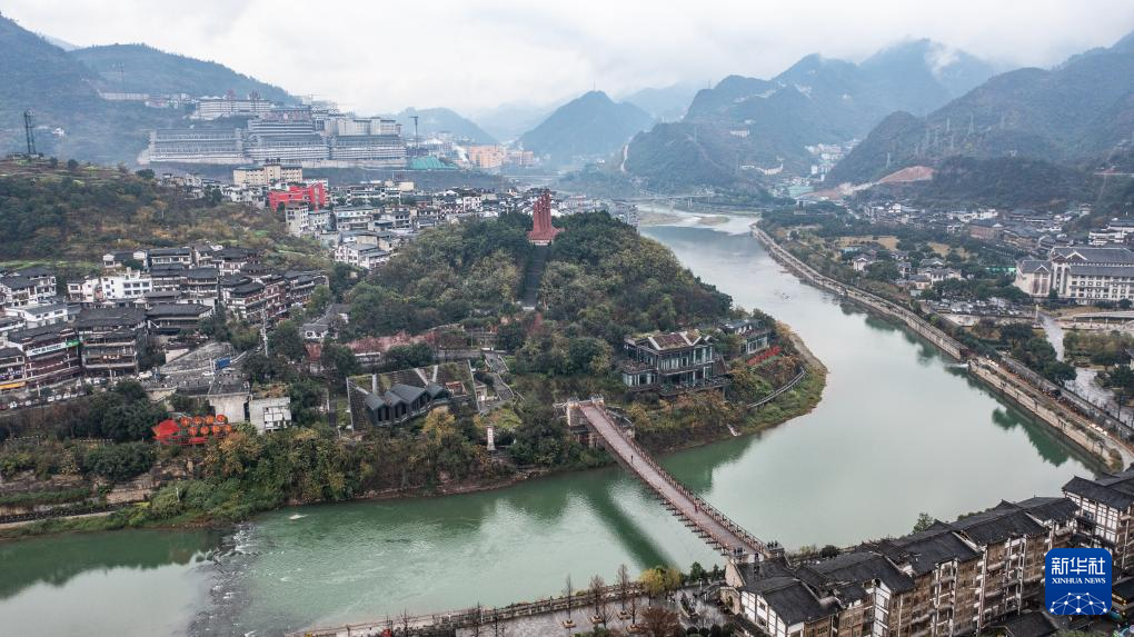 位于遵义市茅台镇的四渡赤水之茅台渡口(2025年1月8日摄,无人机照片)。新华社记者 刘续 摄