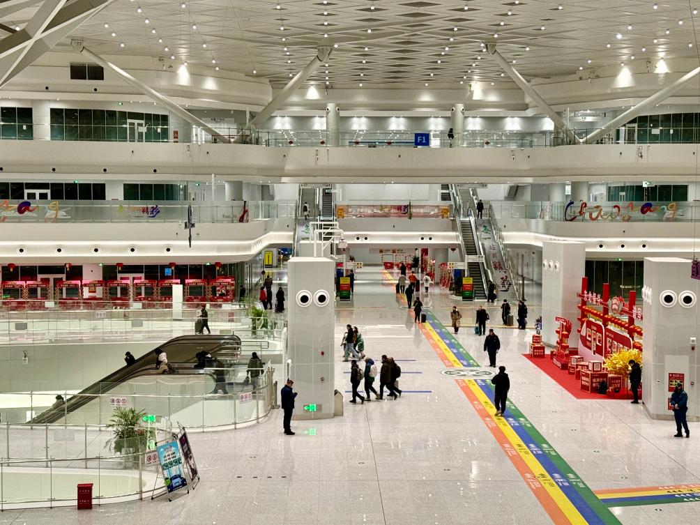 1月15日,北京朝阳站内,春运客流井然有序,铁路乘客便捷换乘地铁。 新华社记者 张骁 摄