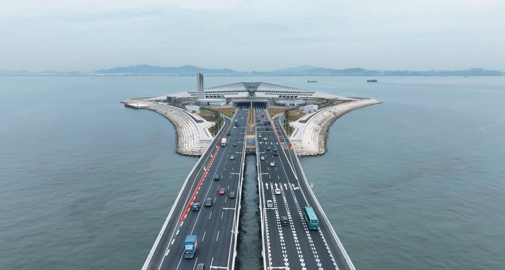 1月14日,深中通道上正在来往的车辆。(深中通道管理中心供图)