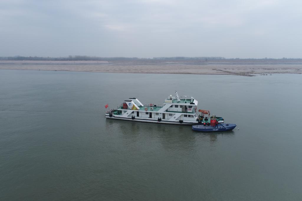 1月14日,长江航道局黄石航道班组在去年完工的“武安段”6米水深航道整治工程戴家洲水域进行航道巡查和航标养护,确保春运首日航道安全畅通。(交通运输部长江航务管理局供图)