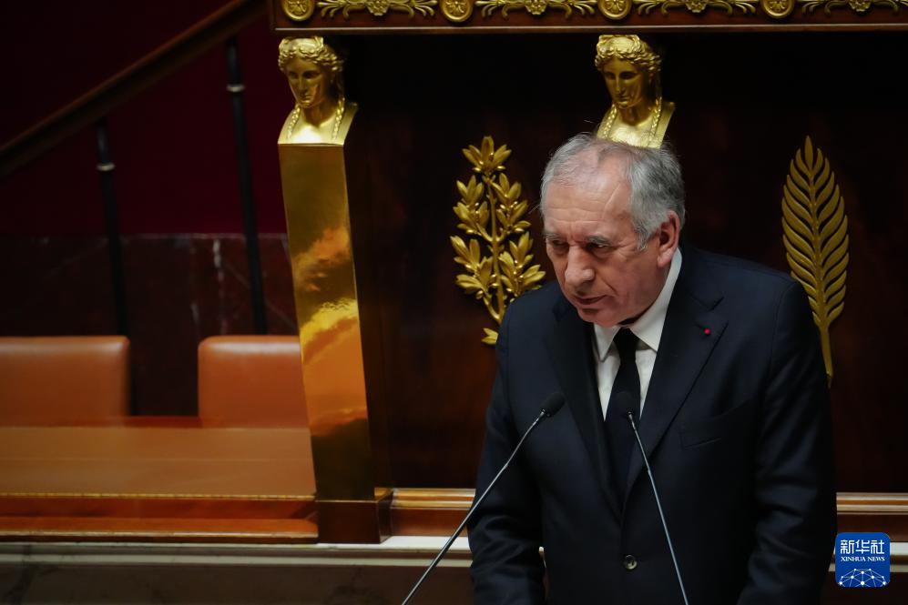 1月14日,法国总理贝鲁在巴黎的国民议会发表演讲。新华社发(奥雷利安·莫里萨尔摄)