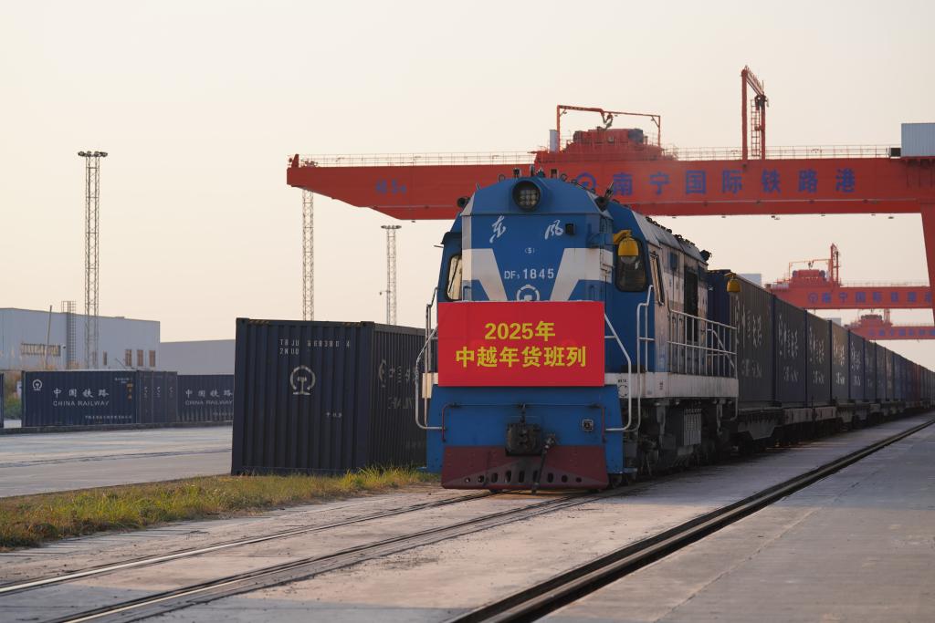 1月15日,中越年货班列在南宁国际铁路港整装待发。新华社发