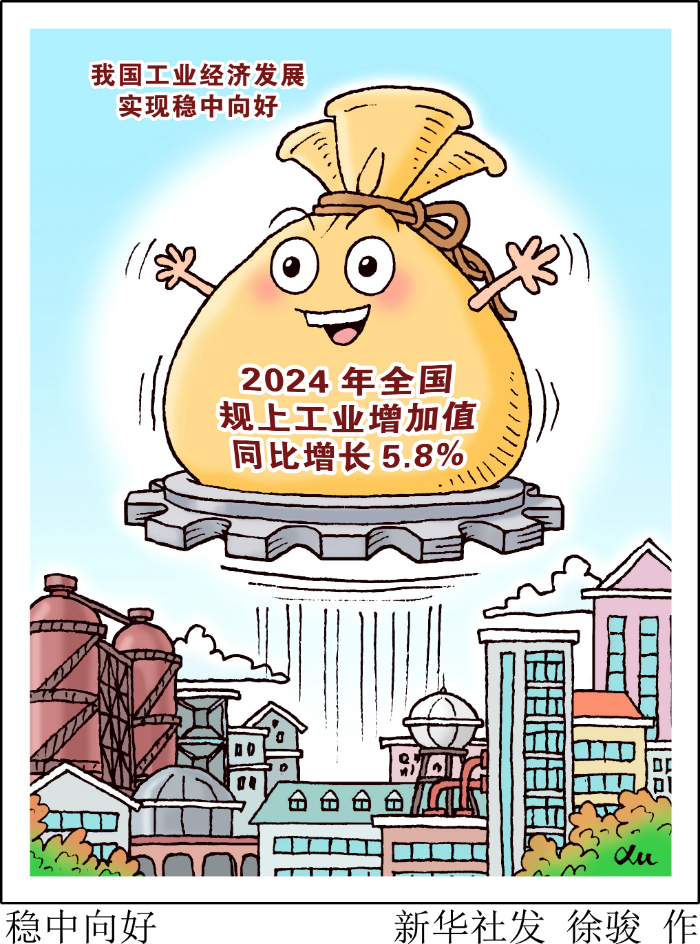 新华社北京1月17日电(记者张晓洁、张辛欣)国家统计局17日发布数据显示,2024年全国规模以上工业增加值比上年增长5.8%,工业生产增势较好,装备制造业和高技术制造业增长较快。