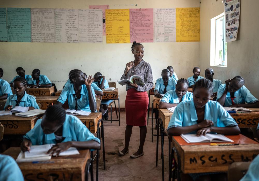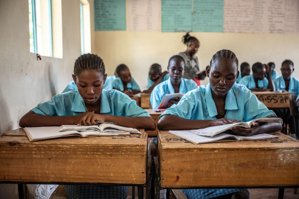 2024年6月18日,在肯尼亚图尔卡纳郡卡库马难民营内,毕生希望女子中学的学生在教室内上课。