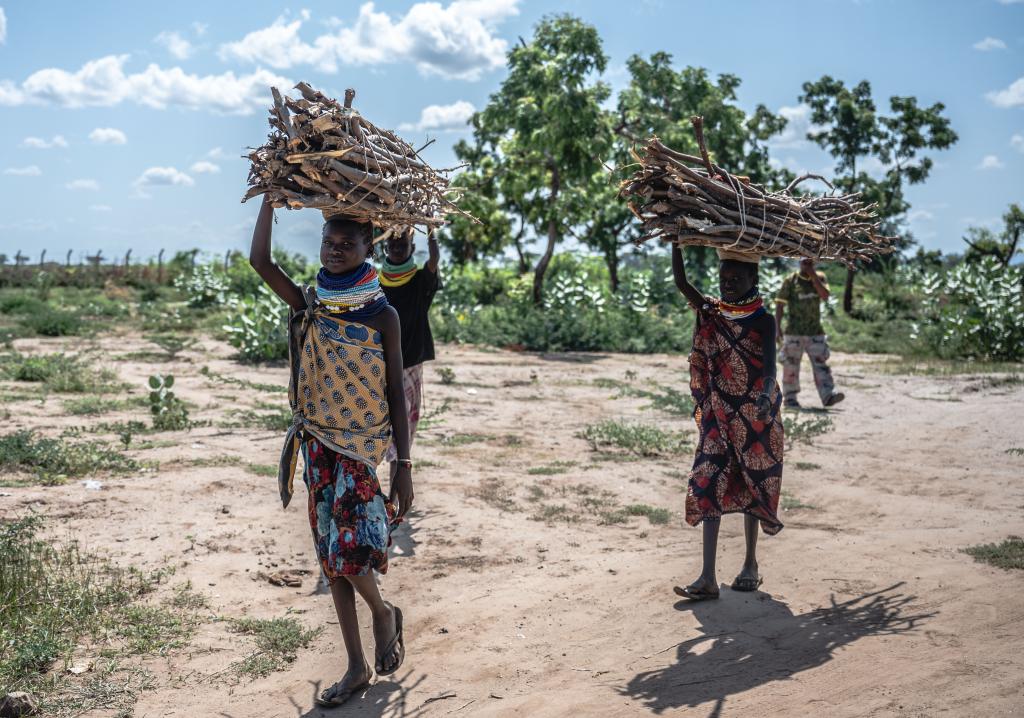 这是2024年6月19日在肯尼亚卡库马难民营拍摄的搬运木料的人们。