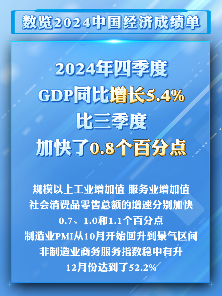 2024年,面对复杂严峻的外部环境,中国经济顶风破浪,稳中有进,持续向好态势不断巩固,沿着高质量发展航道前行的步伐更加坚实,为世界经济复苏和发展提供有力支撑、创造更多机遇。