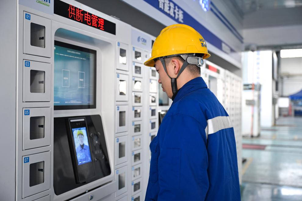 1月16日,在上海动车段虹桥动车运用所,地勤机械师通过人脸识别获取登顶作业权限。