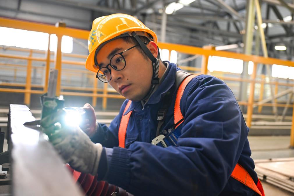 1月16日,在上海动车段虹桥动车运用所,地勤机械师通过手持机完成一级检修作业工艺和检修视频的自动上传。