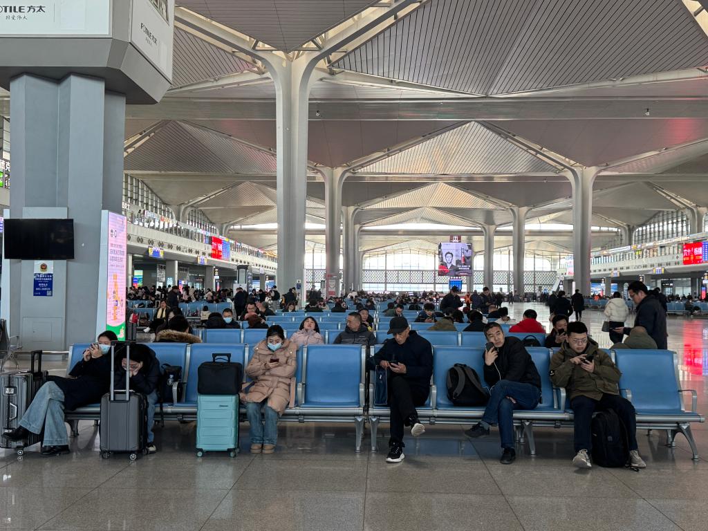 1月17日,乘客带着行李在太原南站候车。新华社记者 王学涛 摄