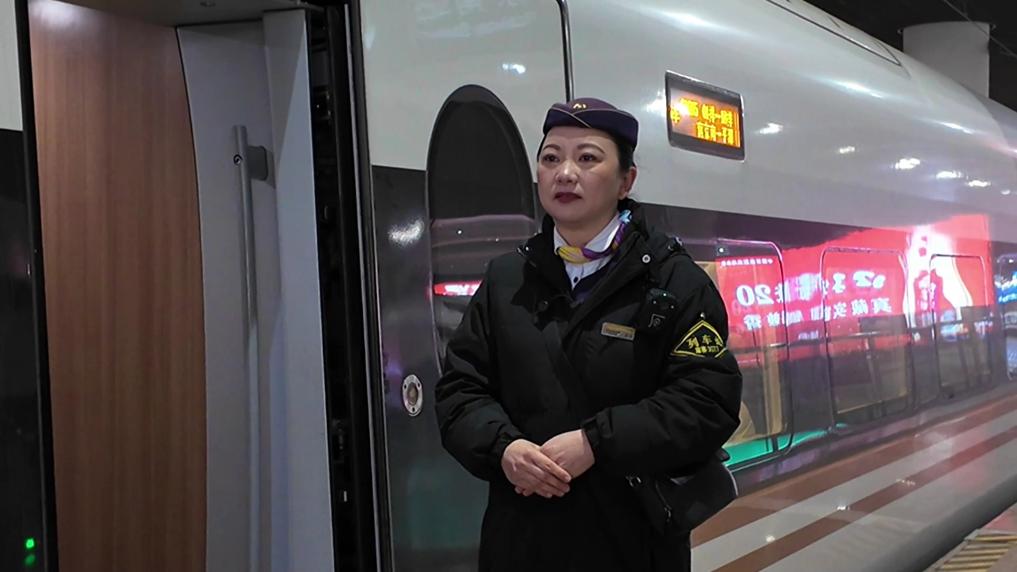 列车长张洁早早来到站台,这是她经历的第28个春运,也是退休前服务的最后一个春运。