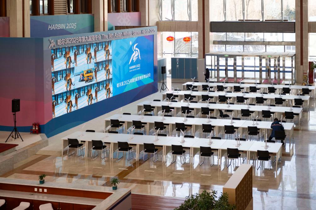 这是1月16日拍摄的2025年第九届亚冬会雪上赛区亚布力山地媒体中心内景。新华社记者 谢剑飞 摄