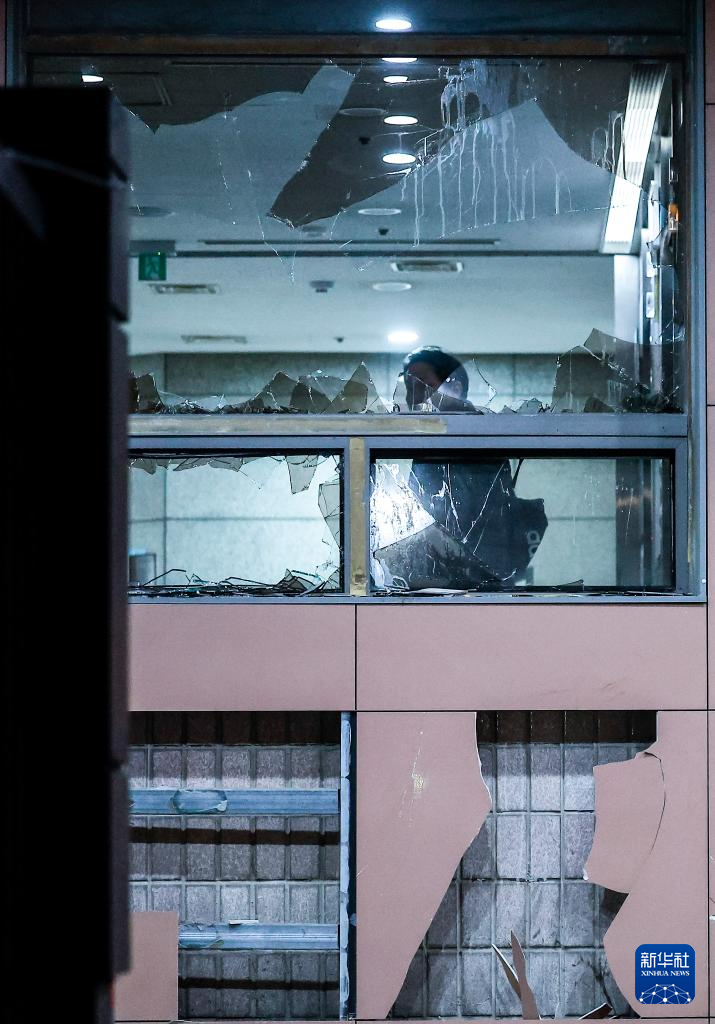 这是1月19日在韩国首尔西部地方法院拍摄的被损坏的建筑。新华社/纽西斯通讯社
