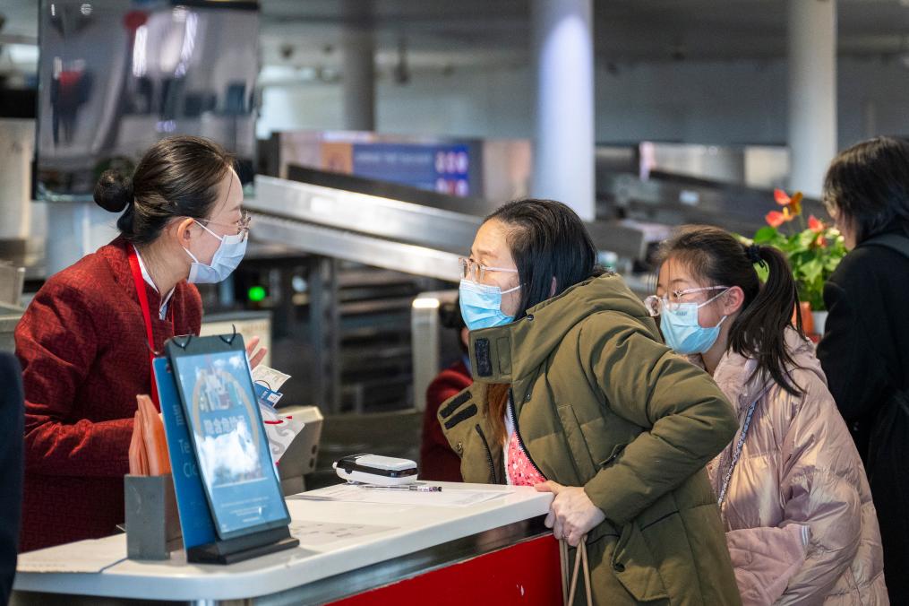 1月14日,在武汉市天河机场,旅客在办理值机。新华社记者 伍志尊 摄