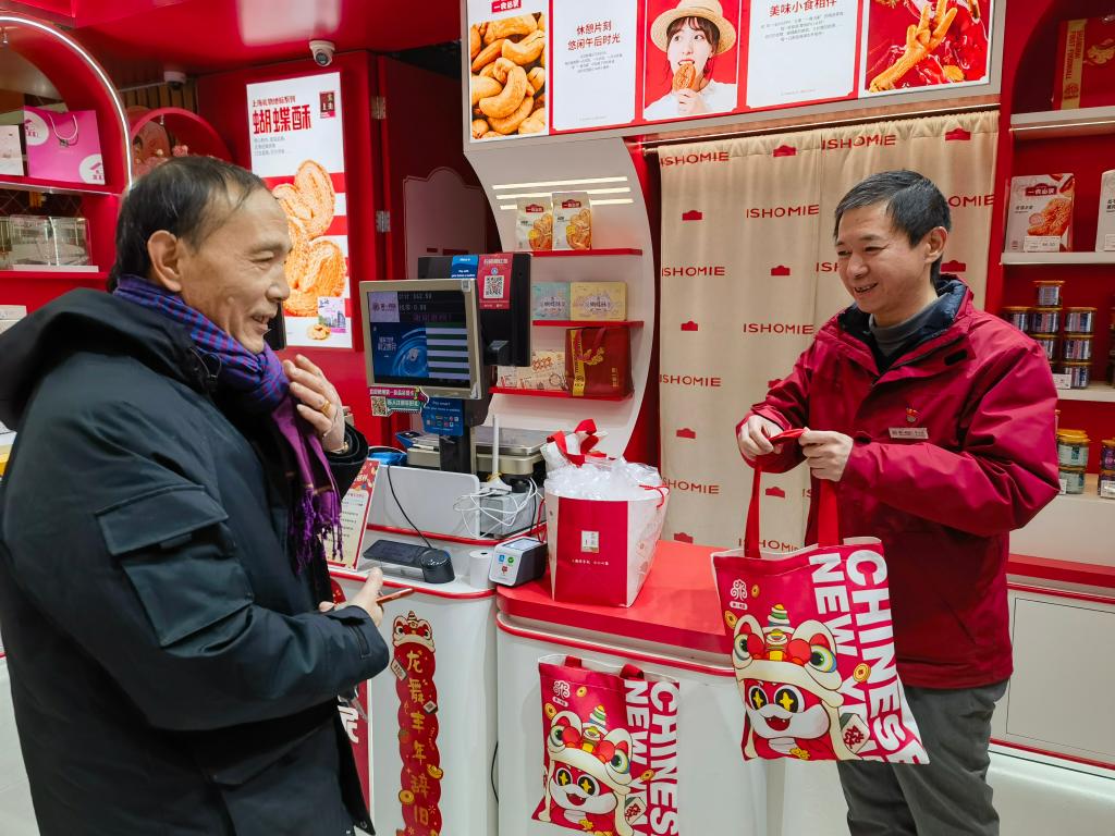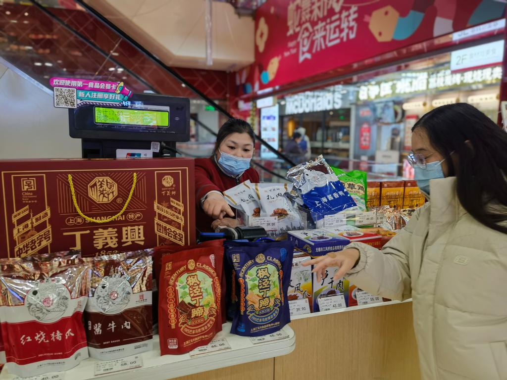 新华社上海1月20日电(记者陈爱平)走进位于南京路步行街的第一食品商店,喜庆红火的新春装饰、琳琅满目的非遗美食、排队精挑细选年货的顾客、笑着称重装袋的售货员……过年的幸福感在掀开挡风门帘瞬间“拉满”。