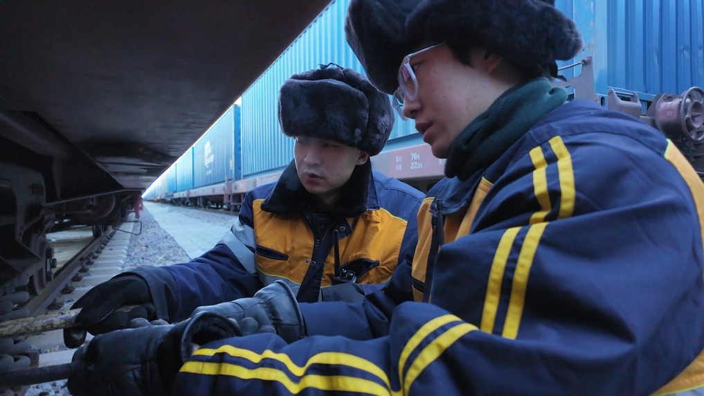 今年是他参加工作后经历的第一个春运,只见他手持检车锤,穿梭于钢铁“长龙”间,锤敲、俯看、侧听,每一个动作都专注而熟练,不放过任何一个细节,确保中欧班列的安全运行。