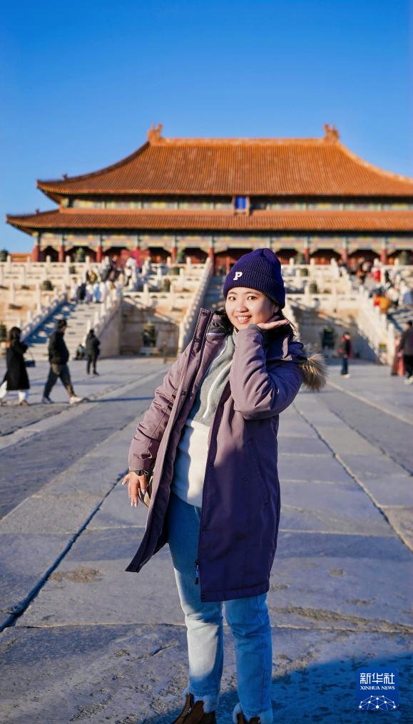 1月15日,台湾青年康心苹在北京故宫博物院游览。新华社发