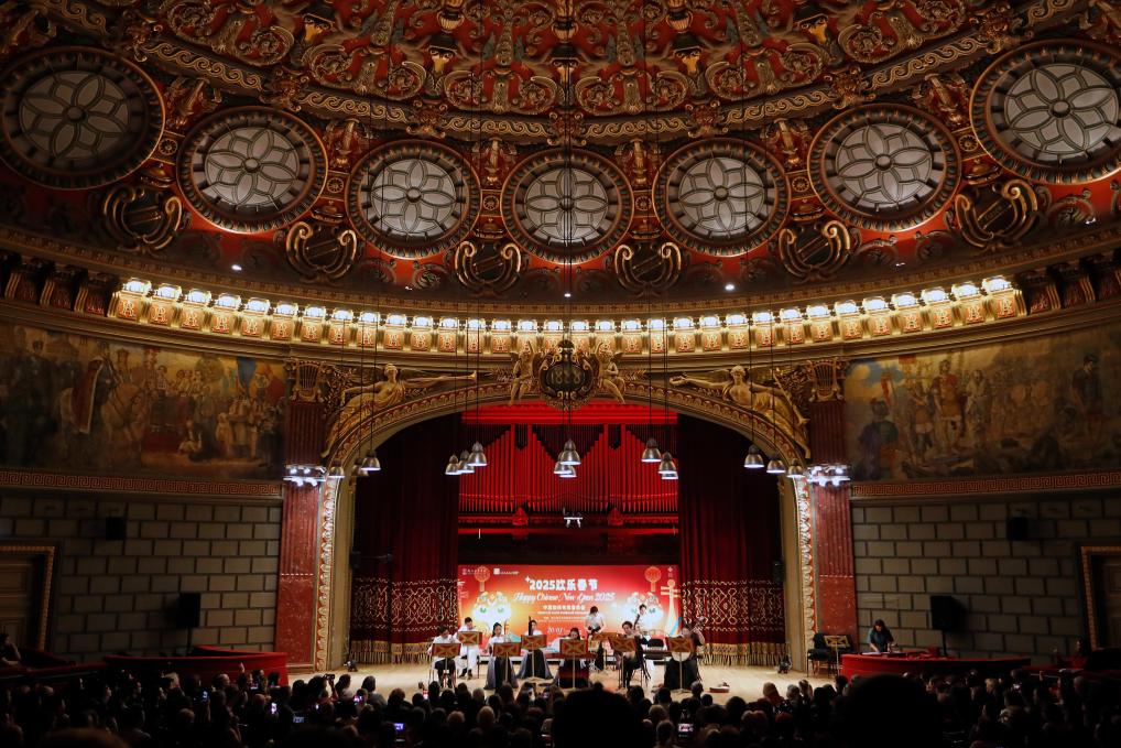 这是1月20日在罗马尼亚首都布加勒斯特的雅典娜音乐厅拍摄的2025“欢乐春节”中国旋律专场音乐会现场。新华社发(克里斯泰尔摄)