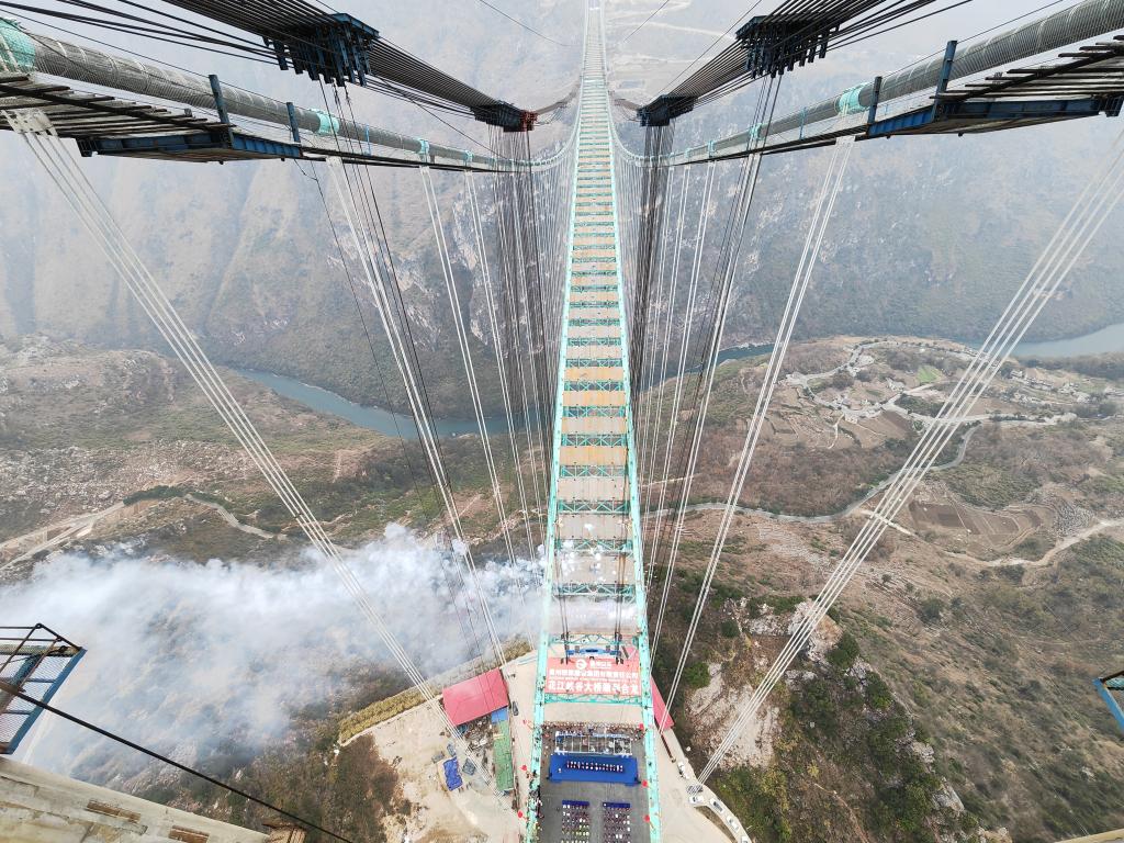 1月17日,花江峡谷大桥举行合龙仪式。新华社记者向定杰摄