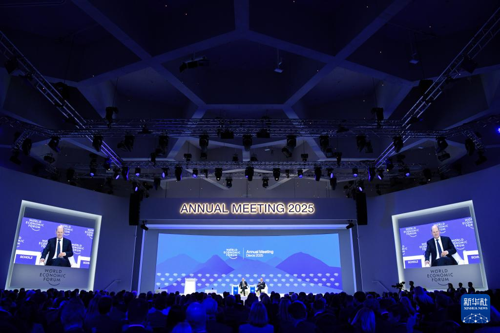 1月21日,在瑞士达沃斯,德国总理朔尔茨参加世界经济论坛2025年年会。新华社记者 连漪 摄
