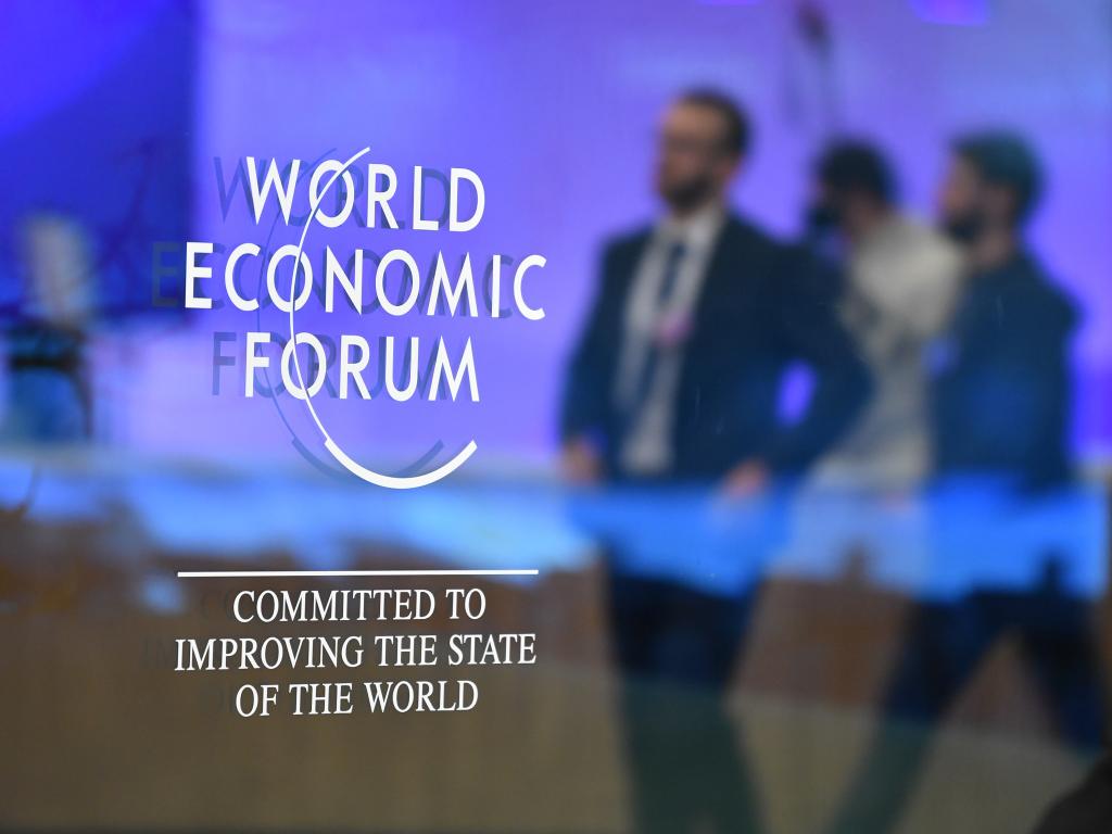 这是1月19日在瑞士达沃斯拍摄的世界经济论坛标识。新华社记者连漪摄