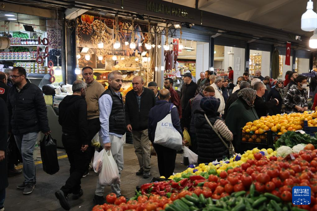 1月23日,人们在土耳其安卡拉的一处市场采购。新华社发(穆斯塔法·卡亚摄)