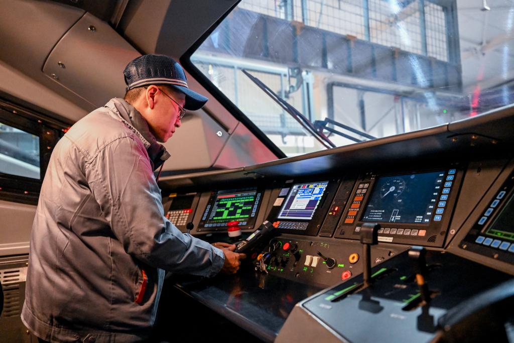 1月17日,工作人员对动车组列车驾驶室进行检查。新华社记者 连振 摄
