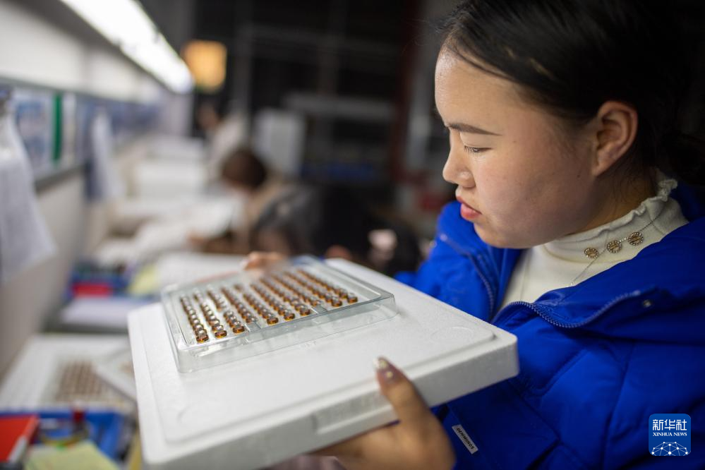 云南省曲靖市会泽县钟屏街道居民在家门口的电子厂上班(1月21日摄)。