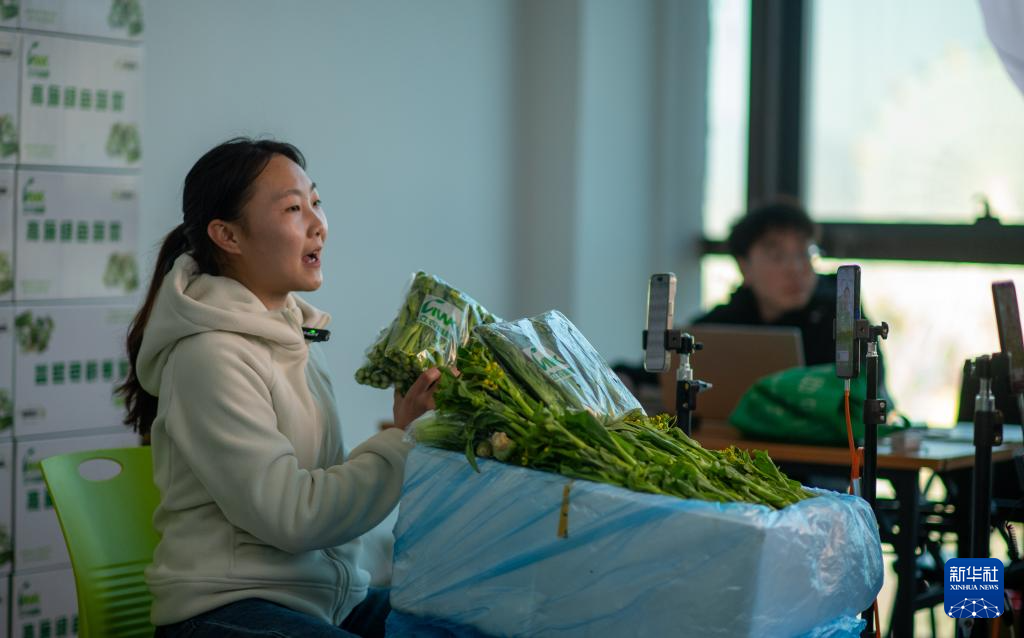 一名网络主播在云南省曲靖市会泽县电商直播产业园直播带货(1月21日摄)。