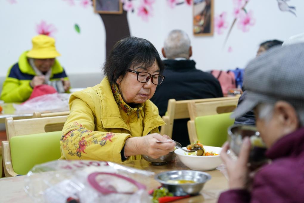 老年人在东华路社区“三块三”爱心食堂用餐。新华社记者 陈欣波 摄