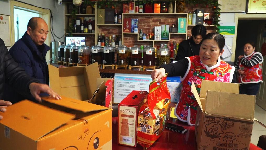 在南沟村大宝农家院,杨宝青正在分拣为客人准备的新年礼物。新华社记者 周万鹏 摄