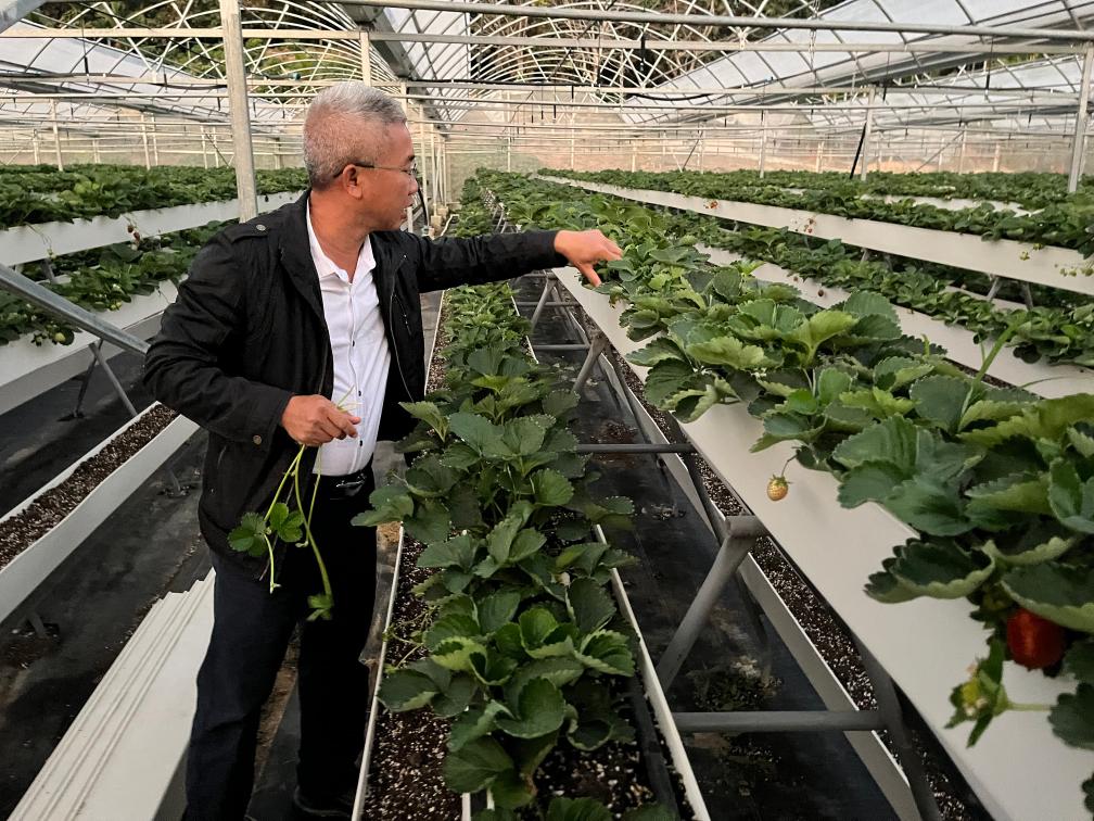 肖春雷在为草莓掐尖。新华社记者罗江 摄