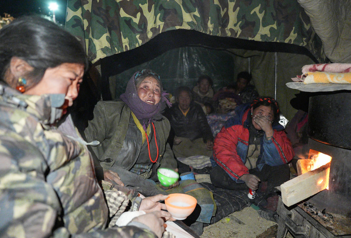 1月7日,措果乡雪珠村受灾群众在帐篷过夜。新华社记者 晋美多吉 摄