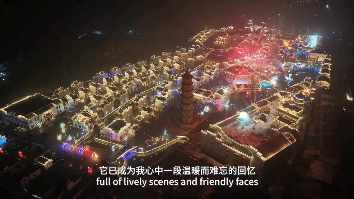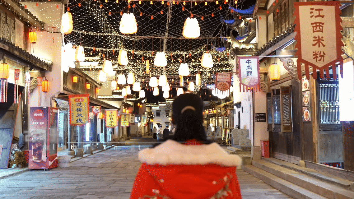 在古镇夜景中拍照打卡