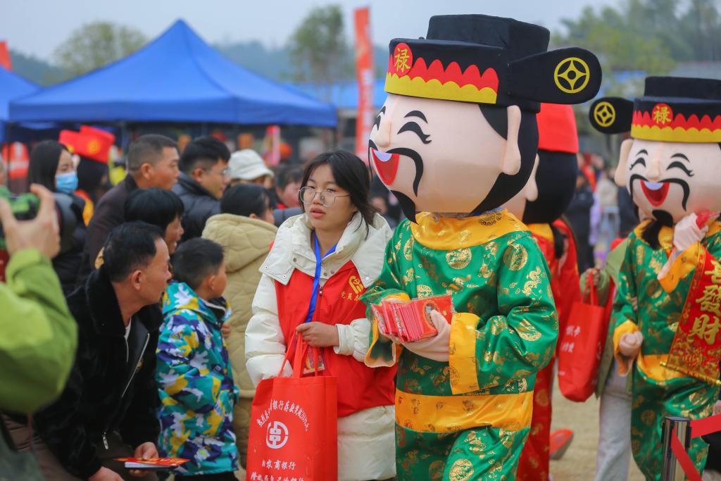 广场上,舞龙队的彩龙腾空而起,游走在人群中,引来阵阵惊呼;十几位演员手持彩绸在广场中央翩翩起舞……村民们纷纷拿出手机,记录下这一欢乐时刻。